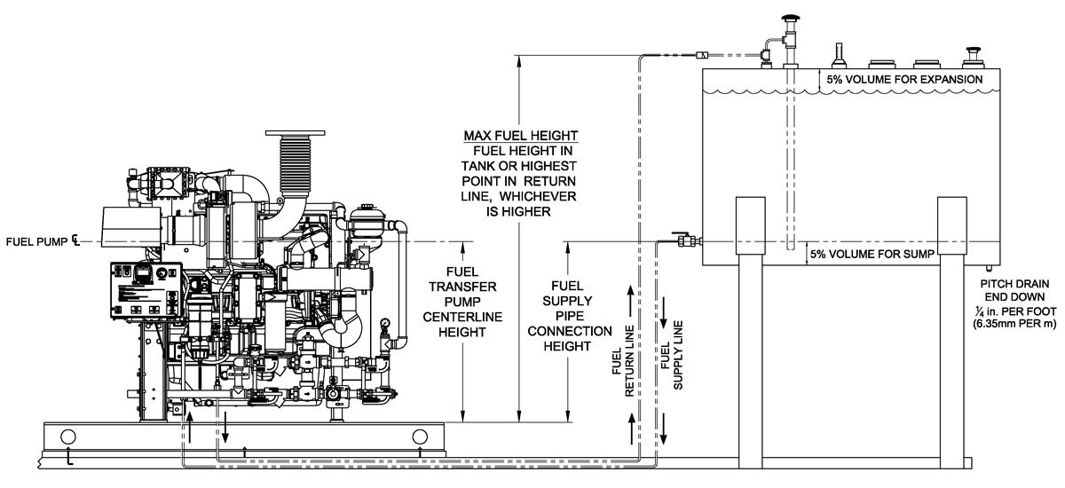 • Refer to the latest edition of NFPA 20 for all fuel tank and fuel line requirements